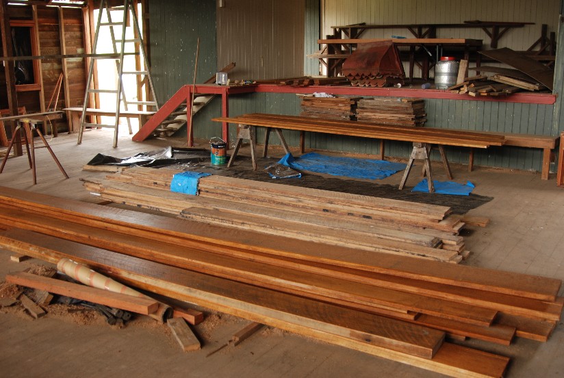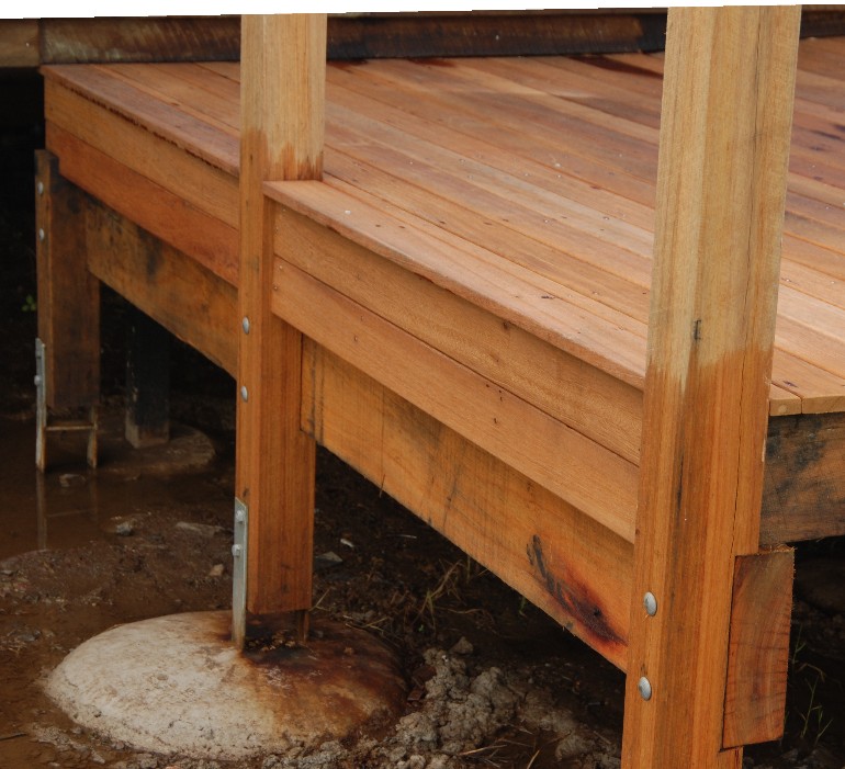 Part of the very strong disabled ramp. All supporting beams have been treated with linseed oil.