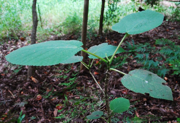 A 1.5 m specimen. The eaten patches on the leaves are a typical identification indicator for this tree.