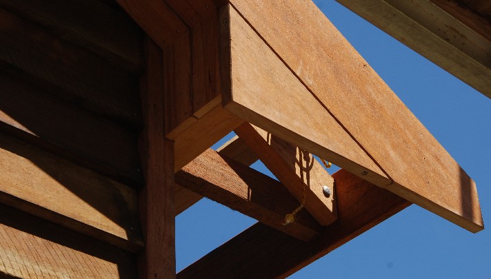 Front barge board end detail, the underside of the eaves which will be lined with decking boards.