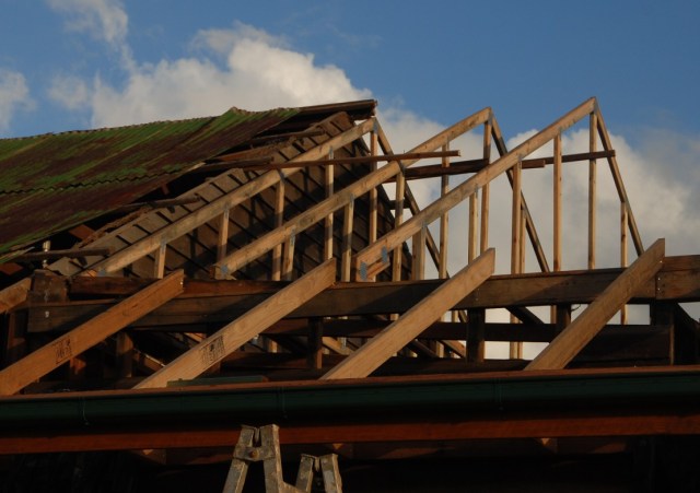 5.30 pm Monday with half of the roof on.