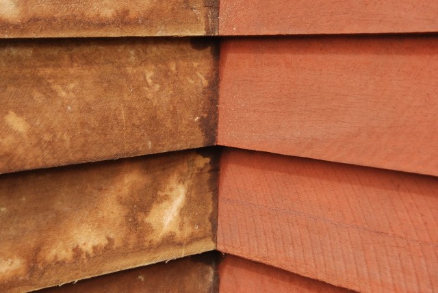 Detail of the junction of the rear cladding of the foyer and the front wall with the wall or right side brushed and painted.