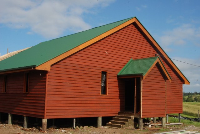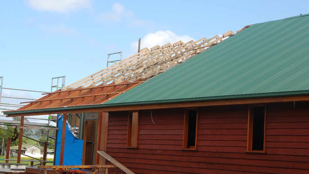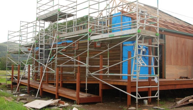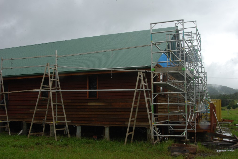 Scaffolding moved to the rear to enable the fitting of the roof.
