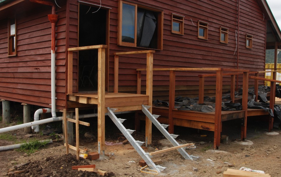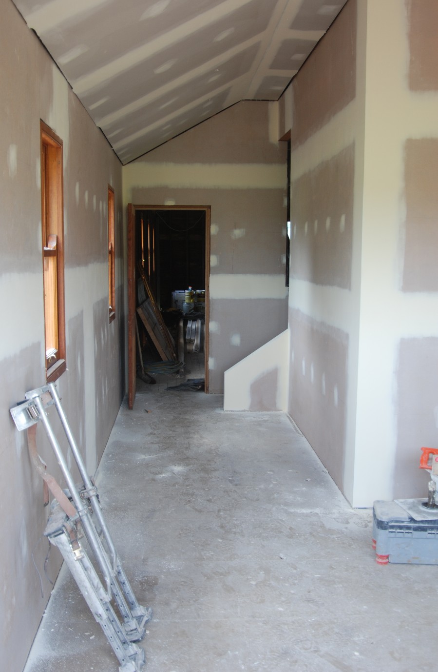 Looking from the kitchen towards the hall interior with the start of the new stairway to the stage area beside the hall doorway. The access was origionally from inside the hall.