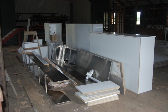 A used stainless sink, associated shelving and cupboards for use in the hall kitchen have been made available through Bob Dyer.
