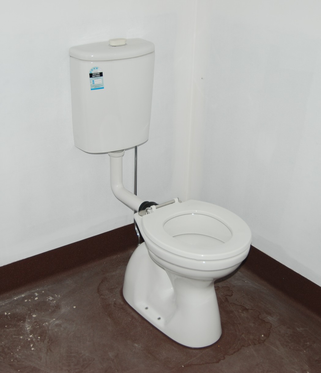 The layout of the disabled toilet was changed from our origional design.The council certifier did not approve our design for a centrally located pedestal with folding grab rails, preferring this corner location typical of most other disabled toilets. A grab rail for the disabled will be fitted on the wall behind the toilet.