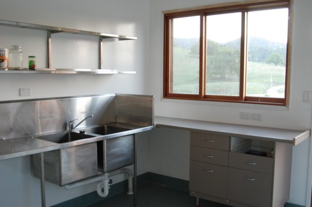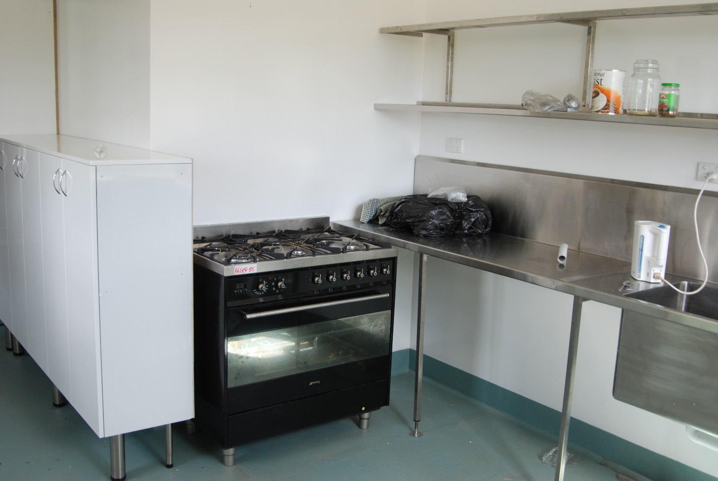 The donated kitchen benches and cupboards have been fitted by Al Scott and Michael