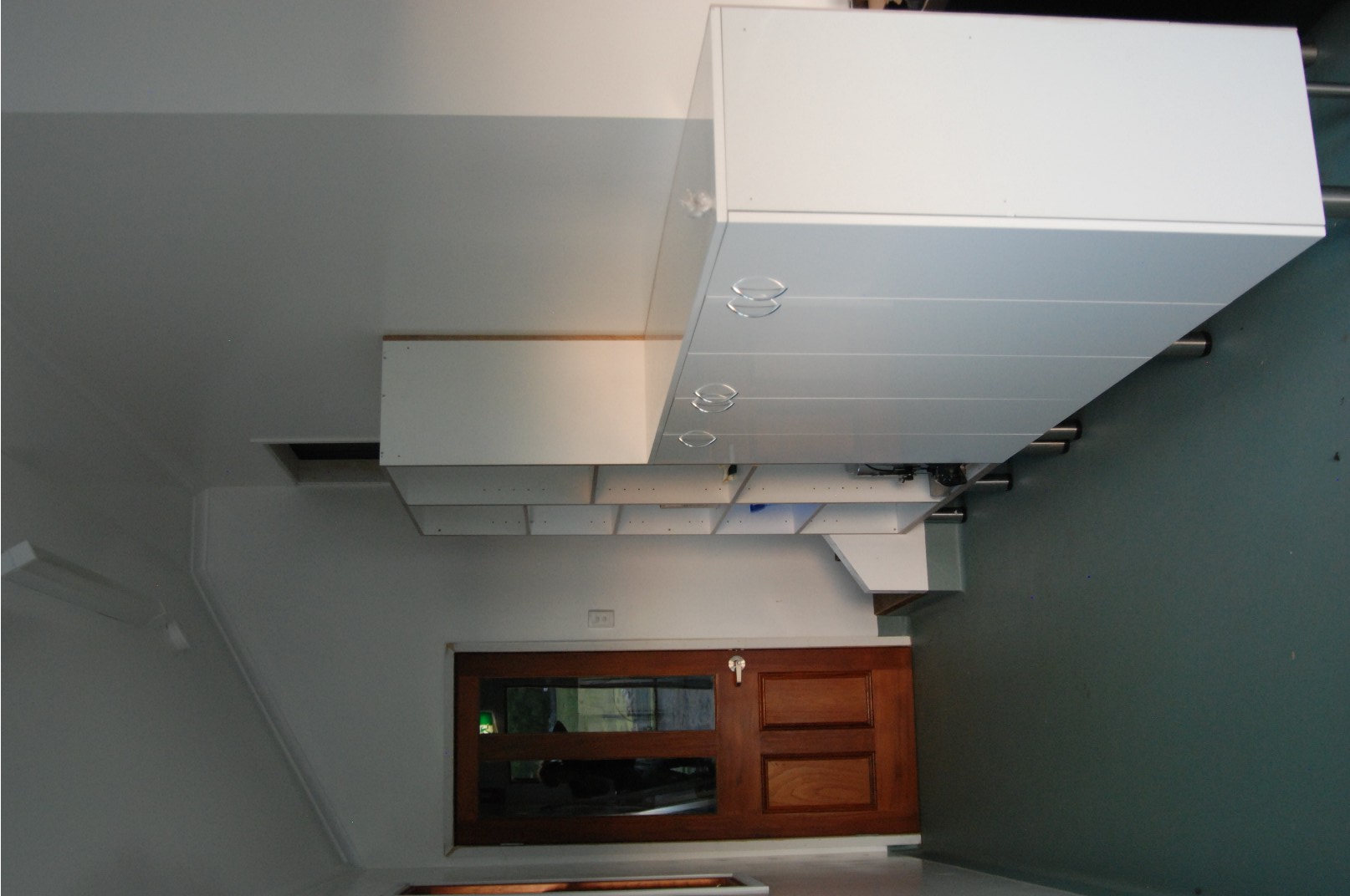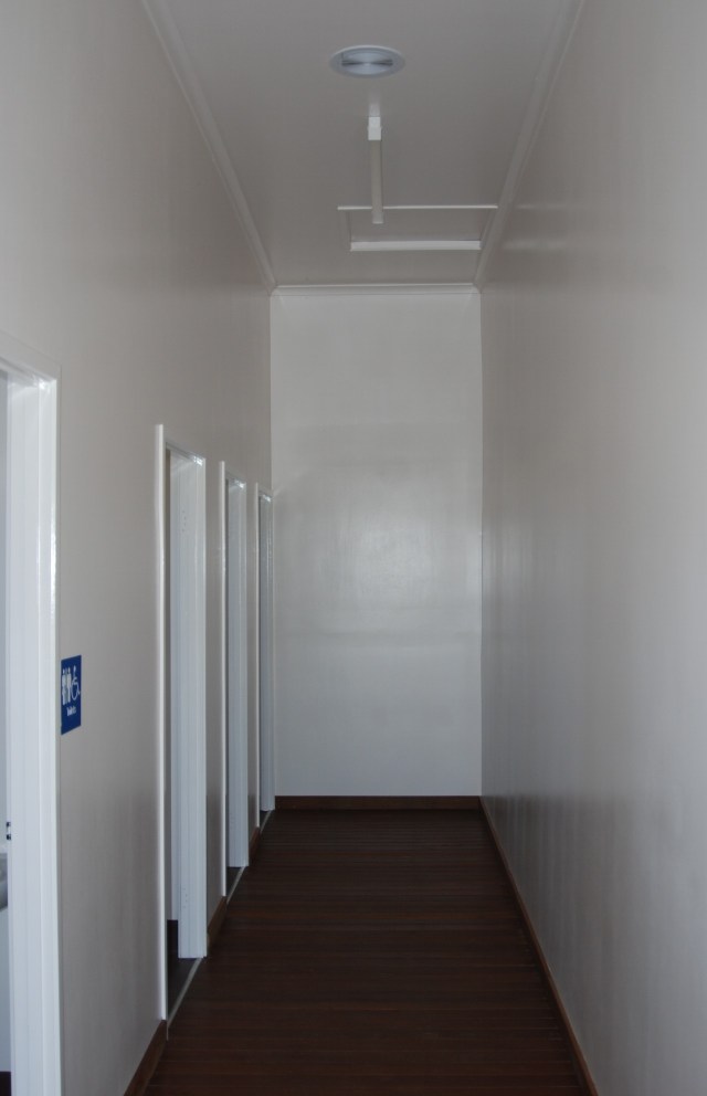Toilet painting nearly complete, with only the doors to go. Ceiling vents have been fitted in all the toilet ceilings.