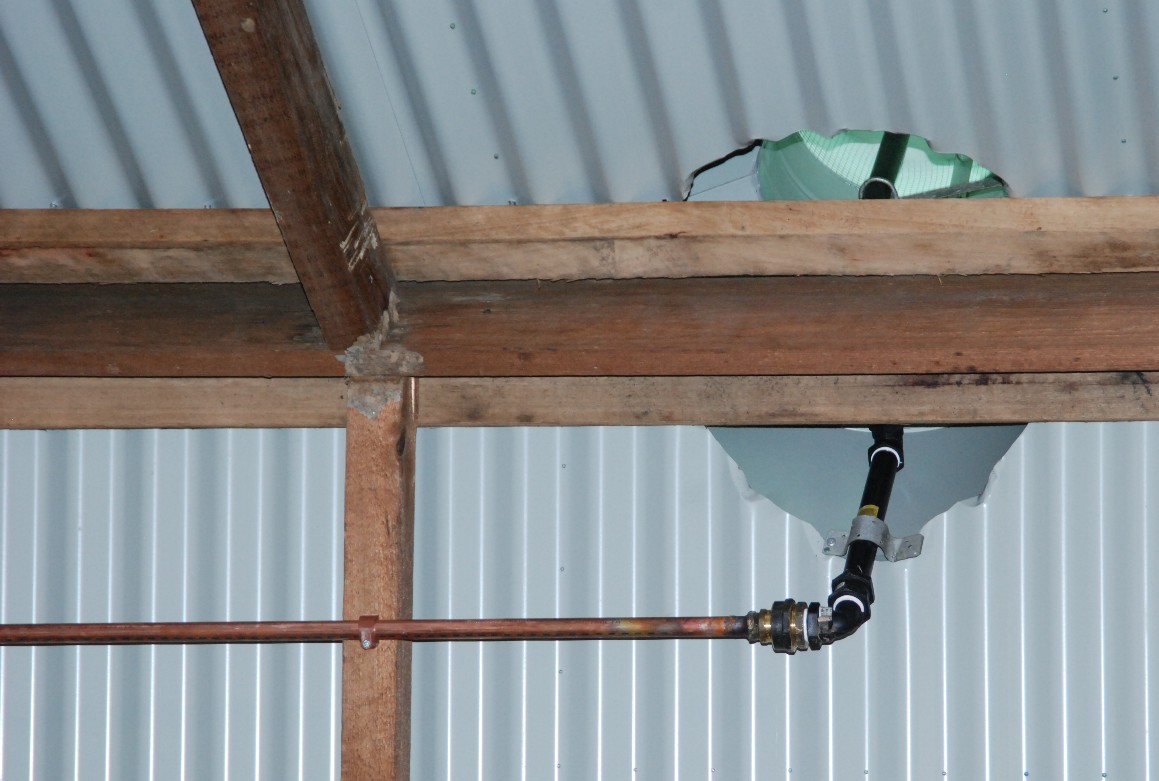 And the sprinkler works. There was some concern that the sound of the water falling on the roof may be a problem, but in the one test carried out, that was not so much of a problem, but the clicking of the arm of the impact sprinkler was, more testing is required.