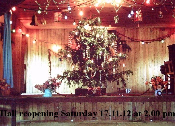 Michael, a local carpenter (responsible for much of the extra carpentry done inside the hall), is fitting the framework for one of the window hoods. He has provided his services at no cost to the Association.
