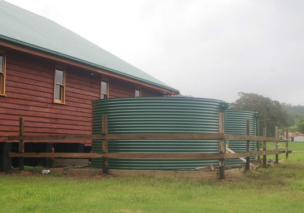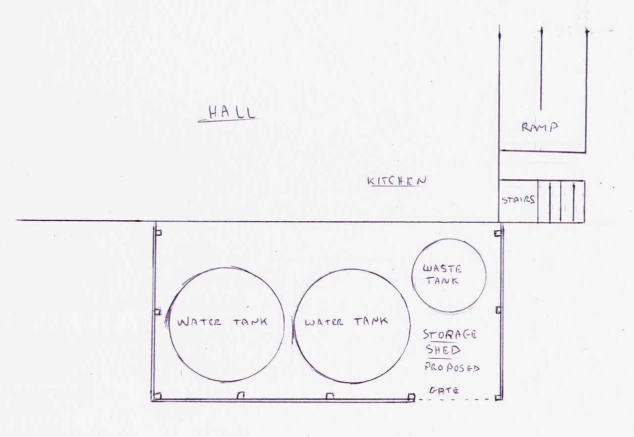 The vacant area beside the water tanks is reserved for a small shed for a mower and garden equipment.