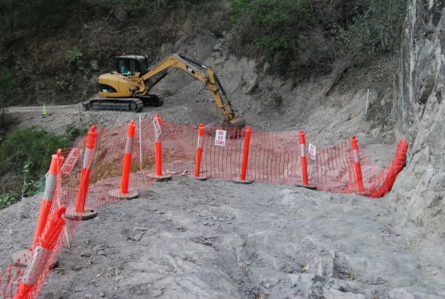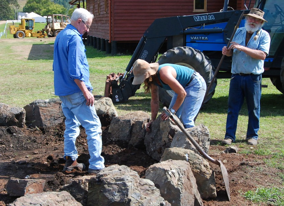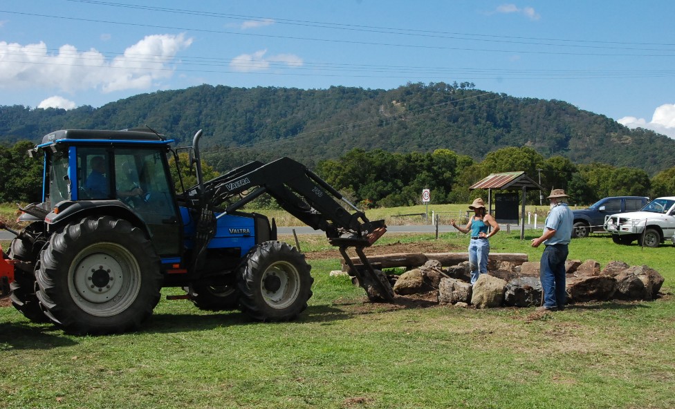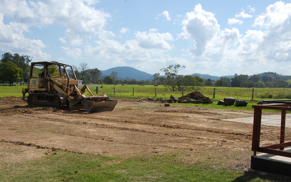 Excess top soil from the fire shed site was used to extend the level perimeter of the fire circle.