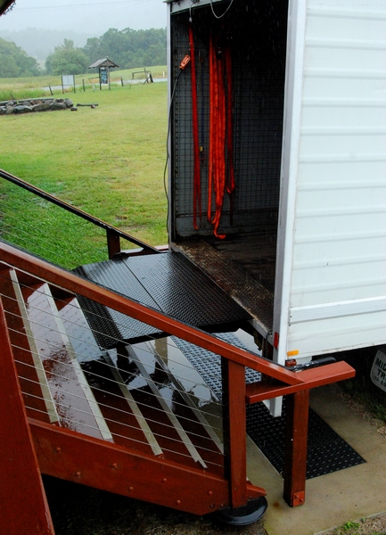 It wasn’t planned but the body of the furniture hire van nicely fitted between the balustrades on the main stairs.