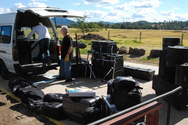 Packing up the sound equipment, the van was already partly filled but somehow they got the remainder in.