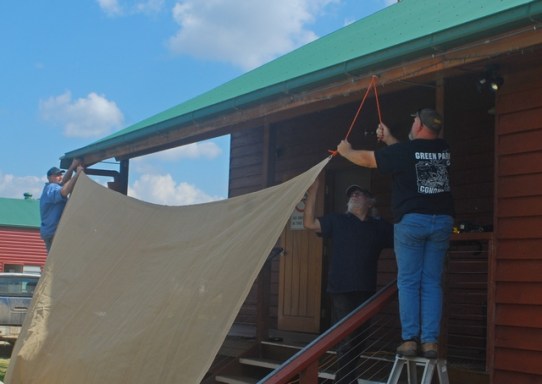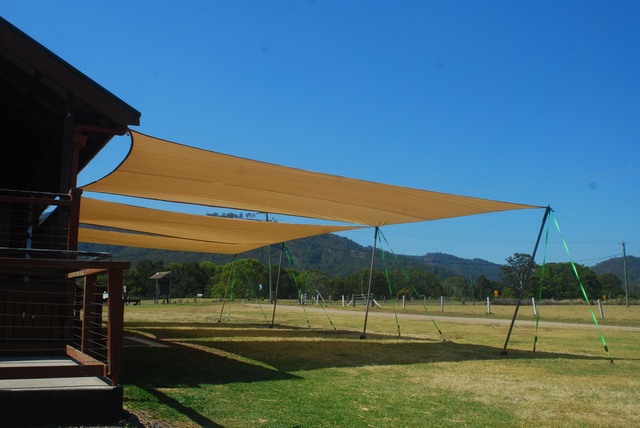 Temporary shade sails have been erected for the