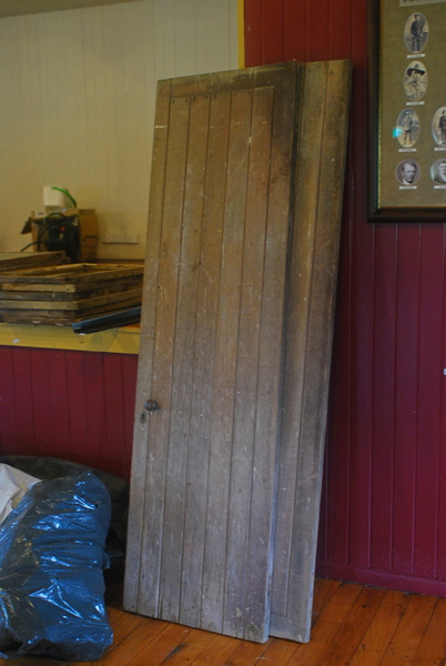 Above, windows, doors and other materials replaced during the hall’s renovation were stored under the stage, now they have to go