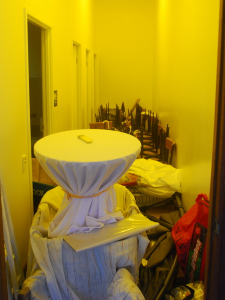 The toilet hallway is often used by weddings for storage of items that are to be used outside on the hall’s grounds on the wedding day