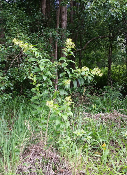 A tough, long-lived, clumping shrub easily spread by seed and capable of growing through dense lananta patches