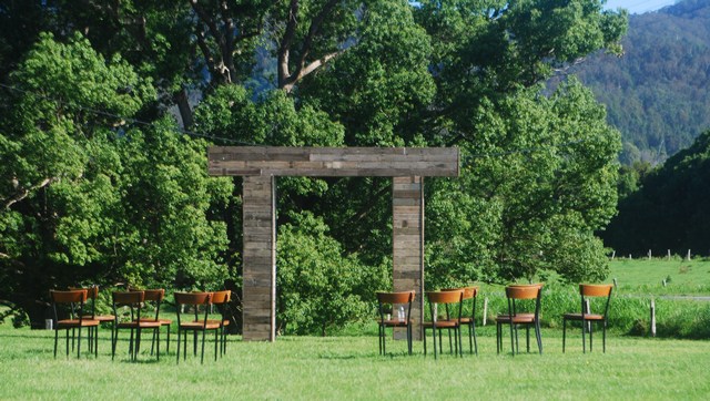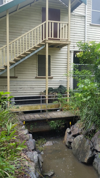 Looking from the hall to Obi Obi Rd over a mass of Madeira vine between the fence and the road