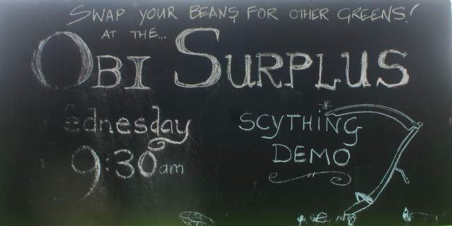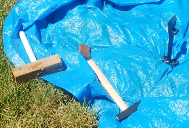 From right to left, scythe anvil, a peening hammer to maintain a narrow edge profile and a mallet to set the anvil